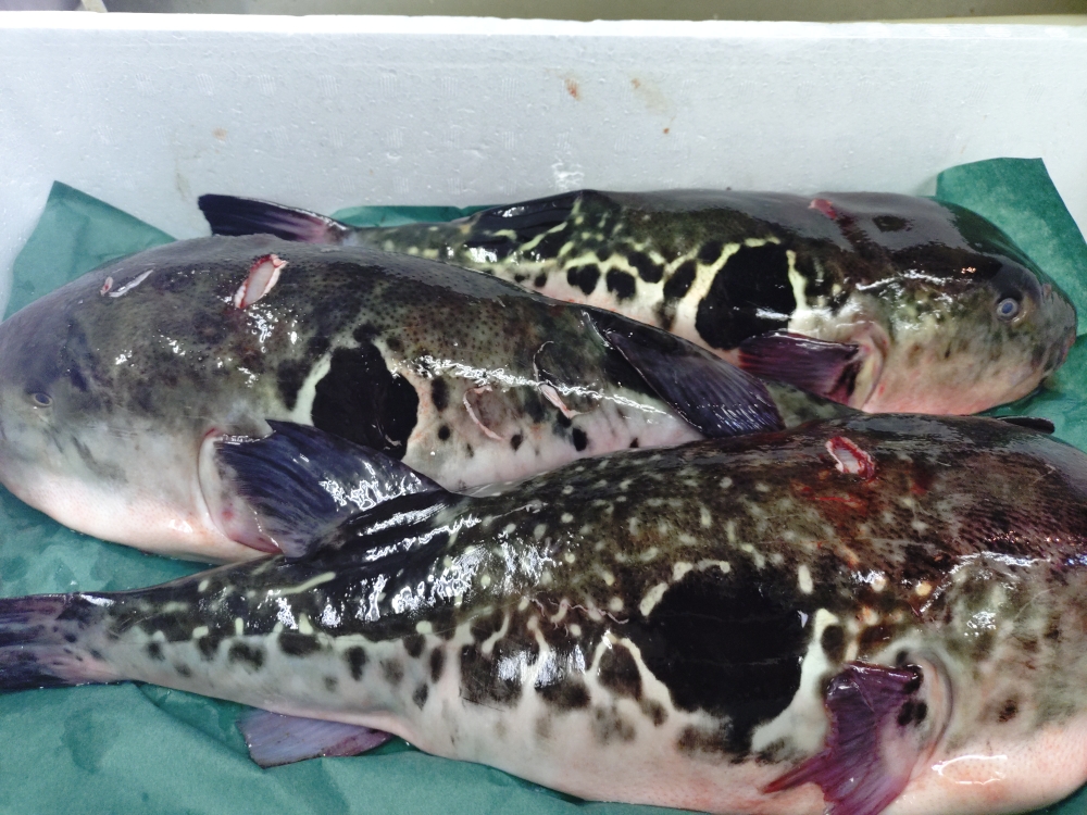 ずっと無かった河豚が来ました〜5k3尾卵巣が無い時期なので歩留り良いです。