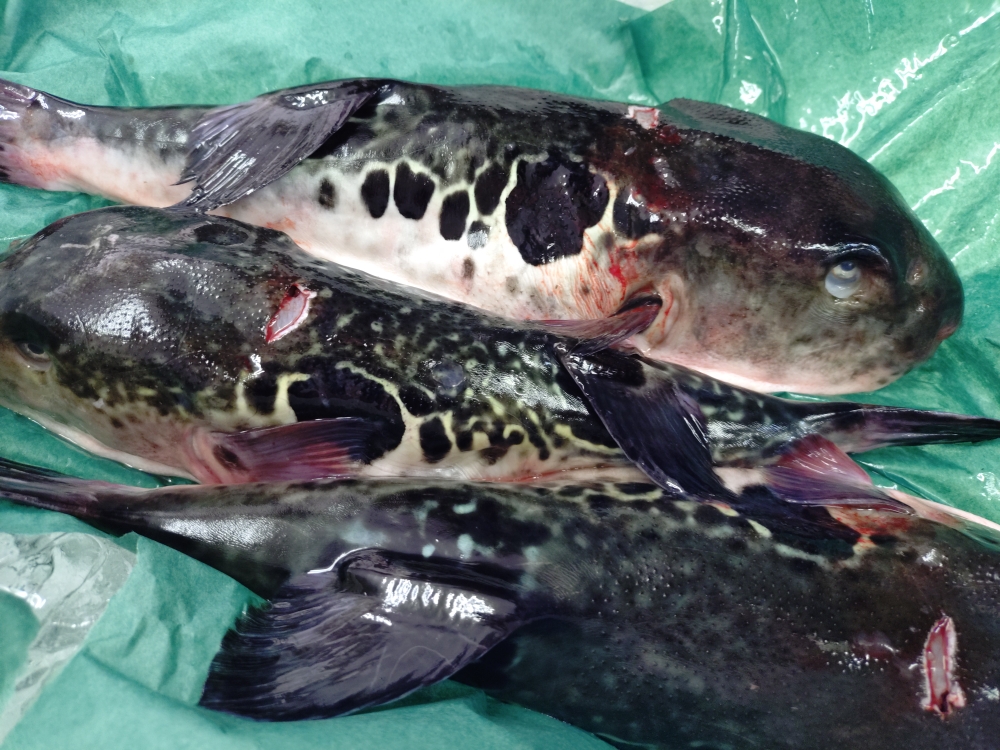 三陸の天然虎河豚3キロ3尾です。1番好きなサイズ〜活け締めなので身質は良好!